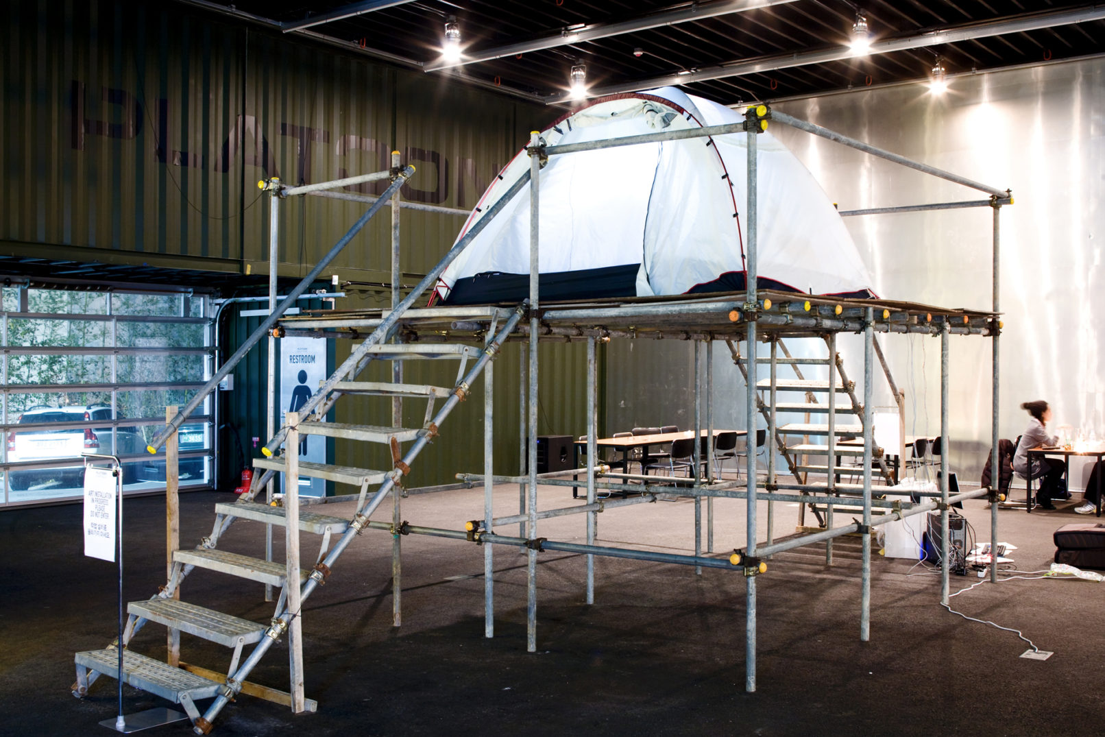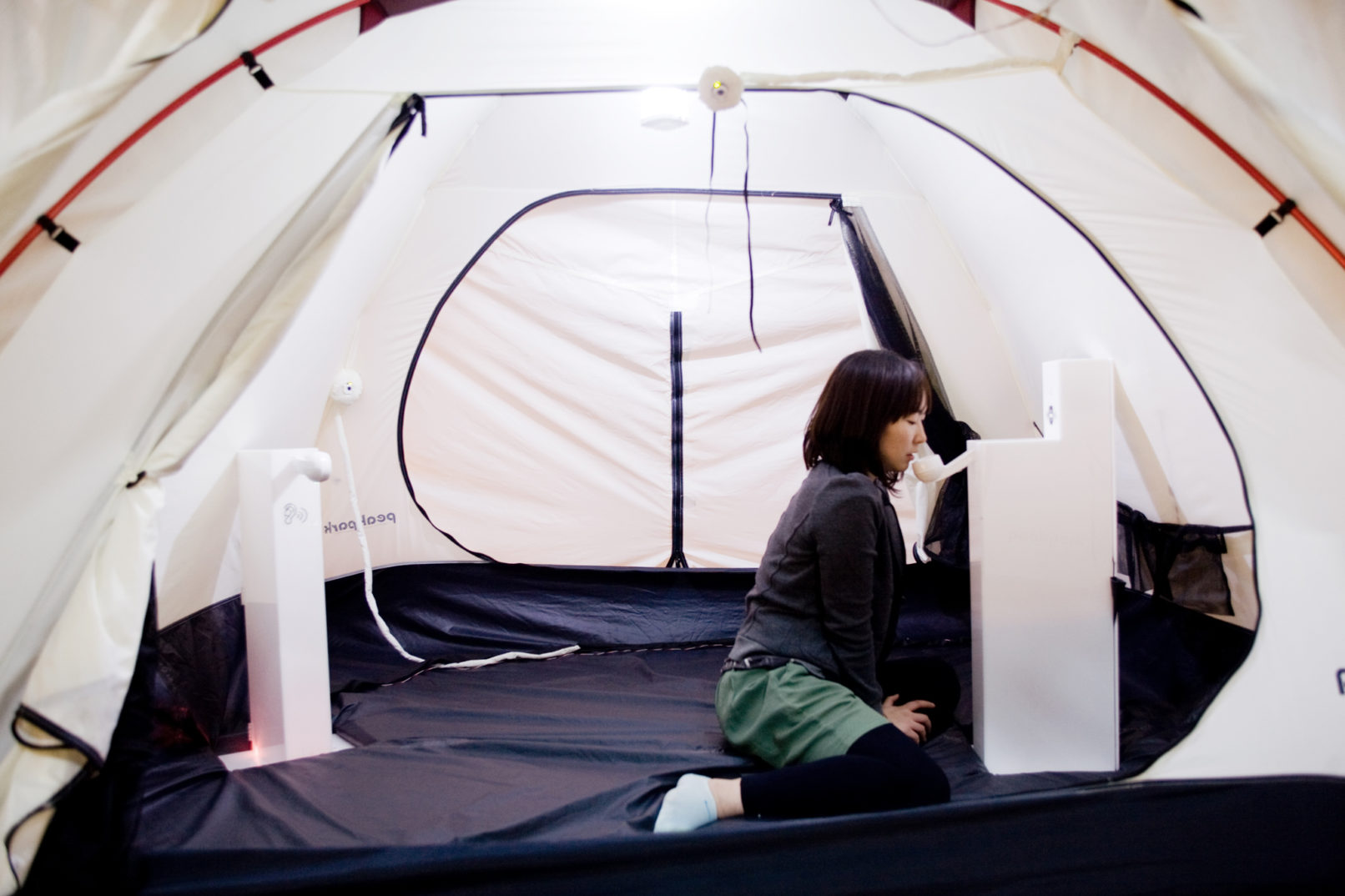 Is there a way of saving the time that is eaten up by 96% of useless worries? Soomi Park creates the space called ‘a private space for anxieties’. The idea behind it is that such a space could help reducing everyday worries by focusing on the ‘real’ ones. The concept of Personal Camp is ‘a room where you pour out all kinds of worries’. Even though Personal Camp is installed in an “uneasy” height ironically each person can sit in a comfortable tent and pour out his/her intimate worries and fears. Additionally, one can listen to other people’s worries and fears secretly. This is a place of confession and listening to others’ anxieties.